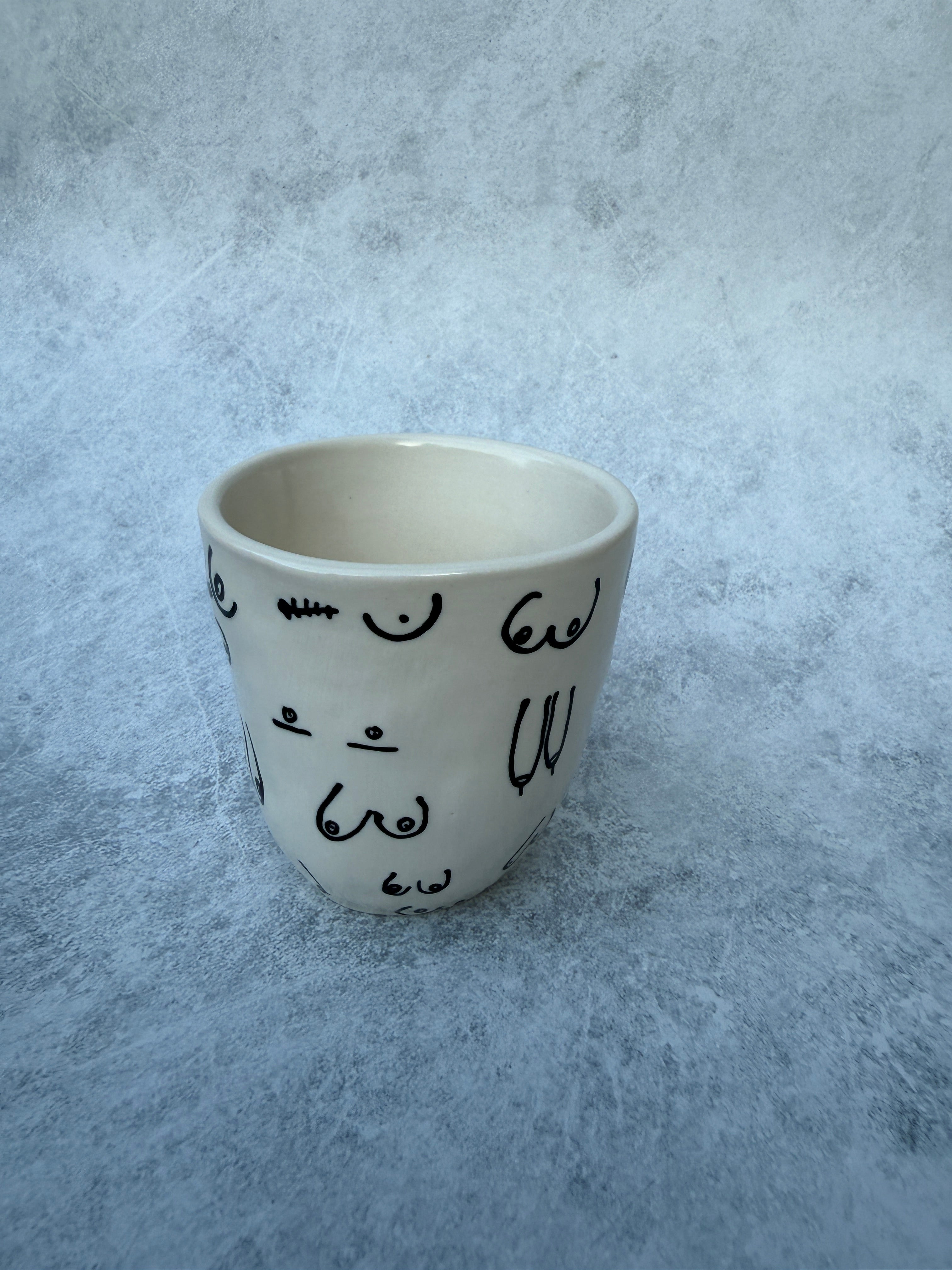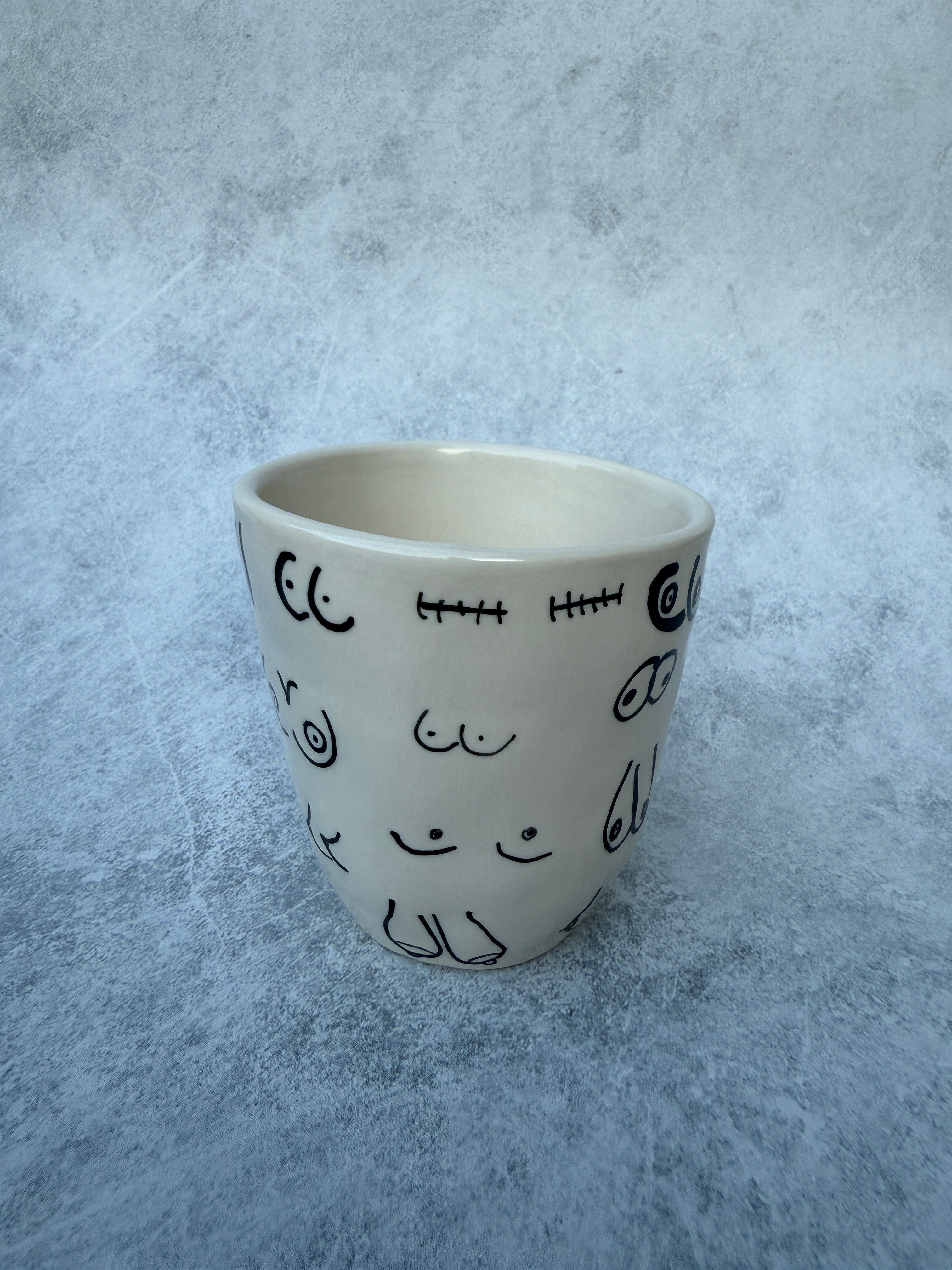 This handmade ceramic cup is sculpted with care and adorned with all different boobs and chests. Whether you're sipping your favorite drink or starting conversations, this piece brings a little empowerment to your everyday ritual. Holding 11 oz of whatever you're drinking, this cup is sure to make you smile.
