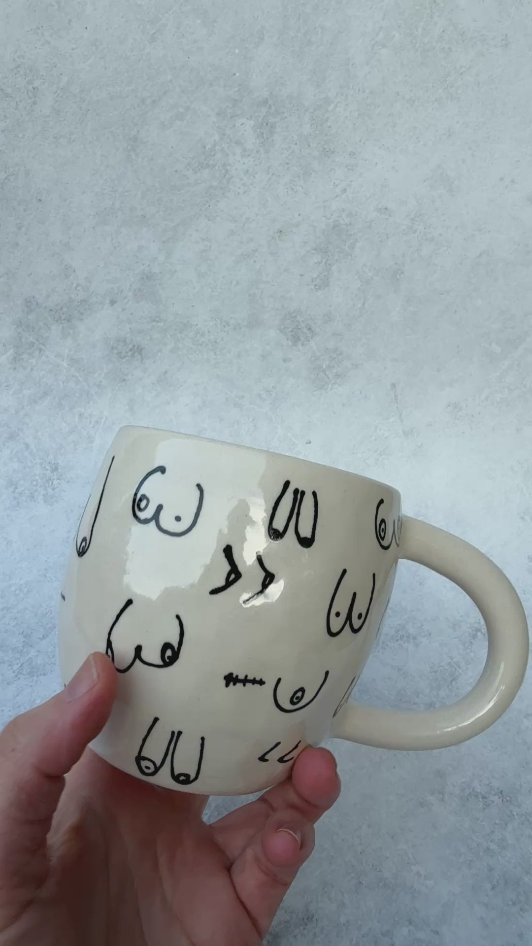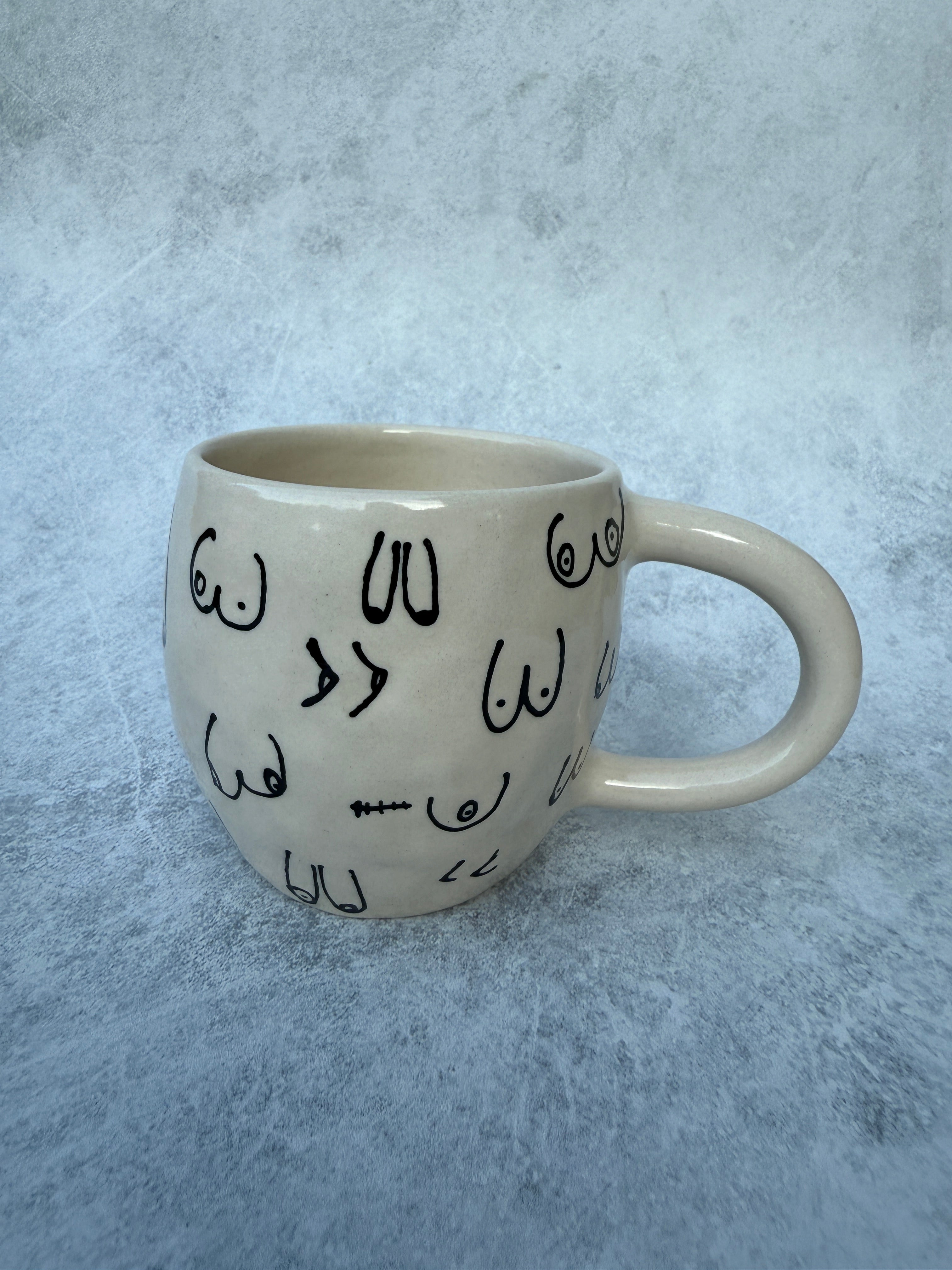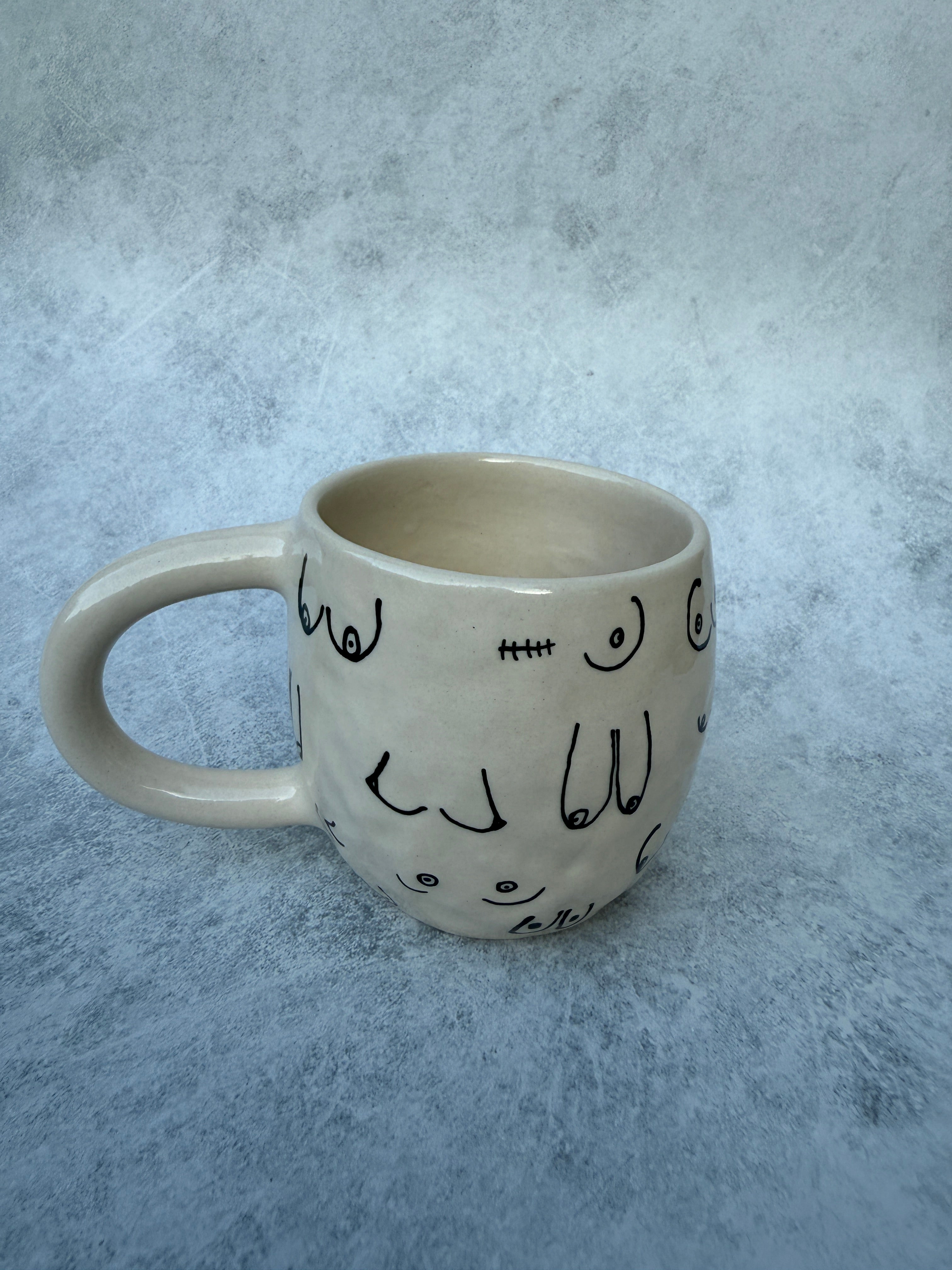 This handmade ceramic mug is sculpted with care and adorned with all different boobs and chests. Whether you're sipping your favorite drink or starting conversations, this piece brings a little empowerment to your everyday ritual. Holding 15 oz of whatever you're drinking, this mug is sure to make you smile.