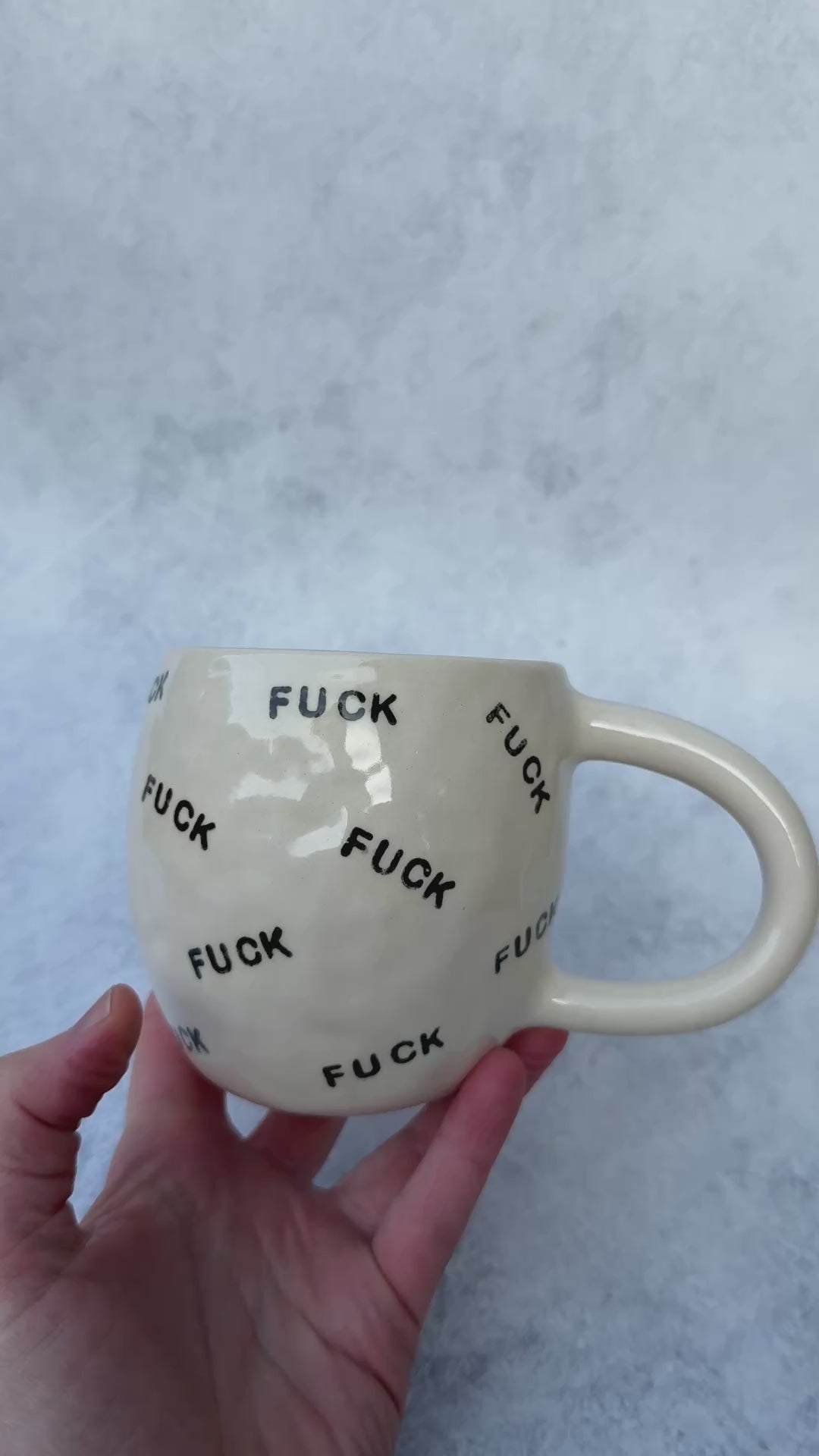 Hand made and hand stamped! They will all be a little different. Holds 15oz and is finished with a clear glossy glaze.