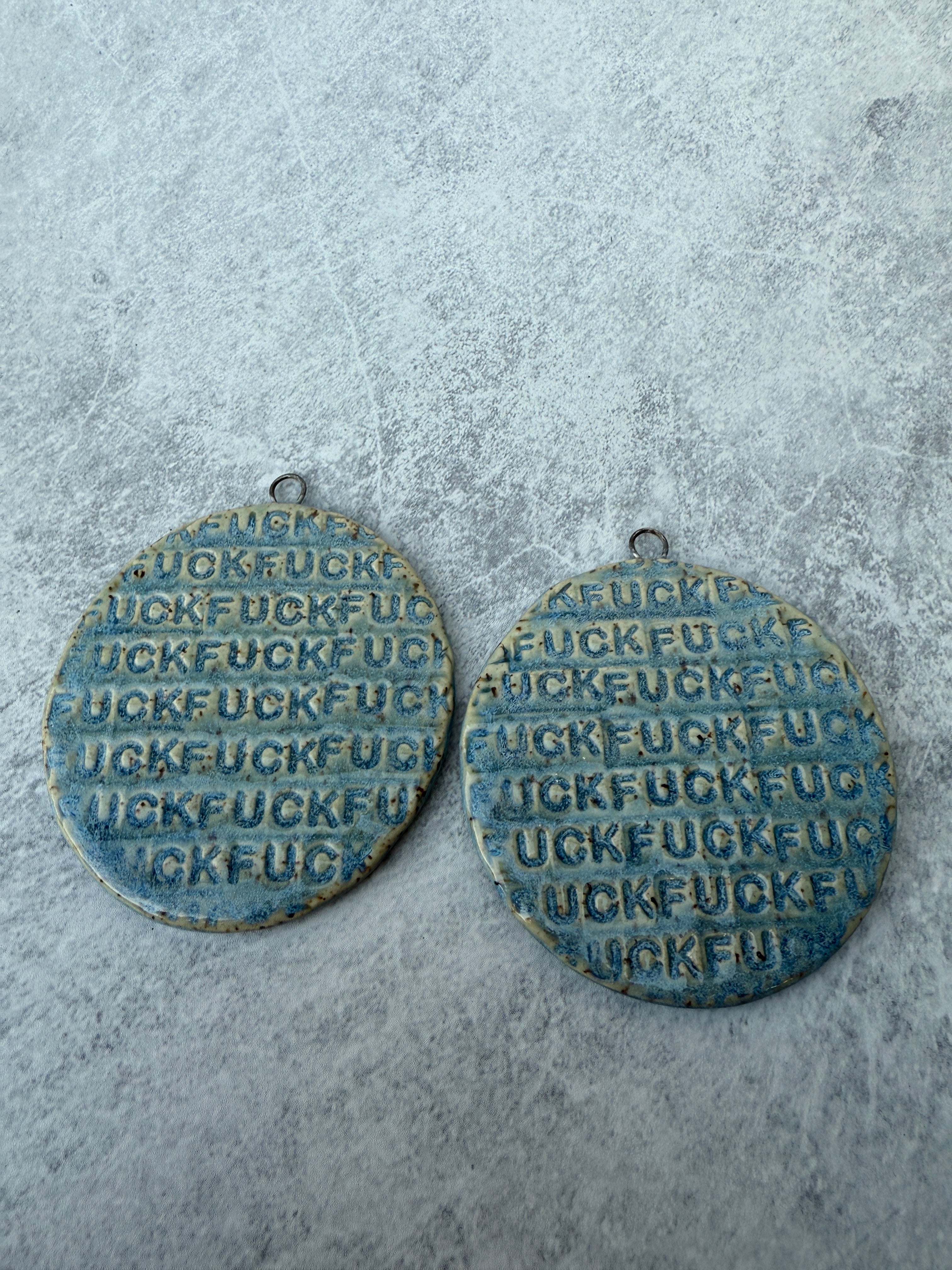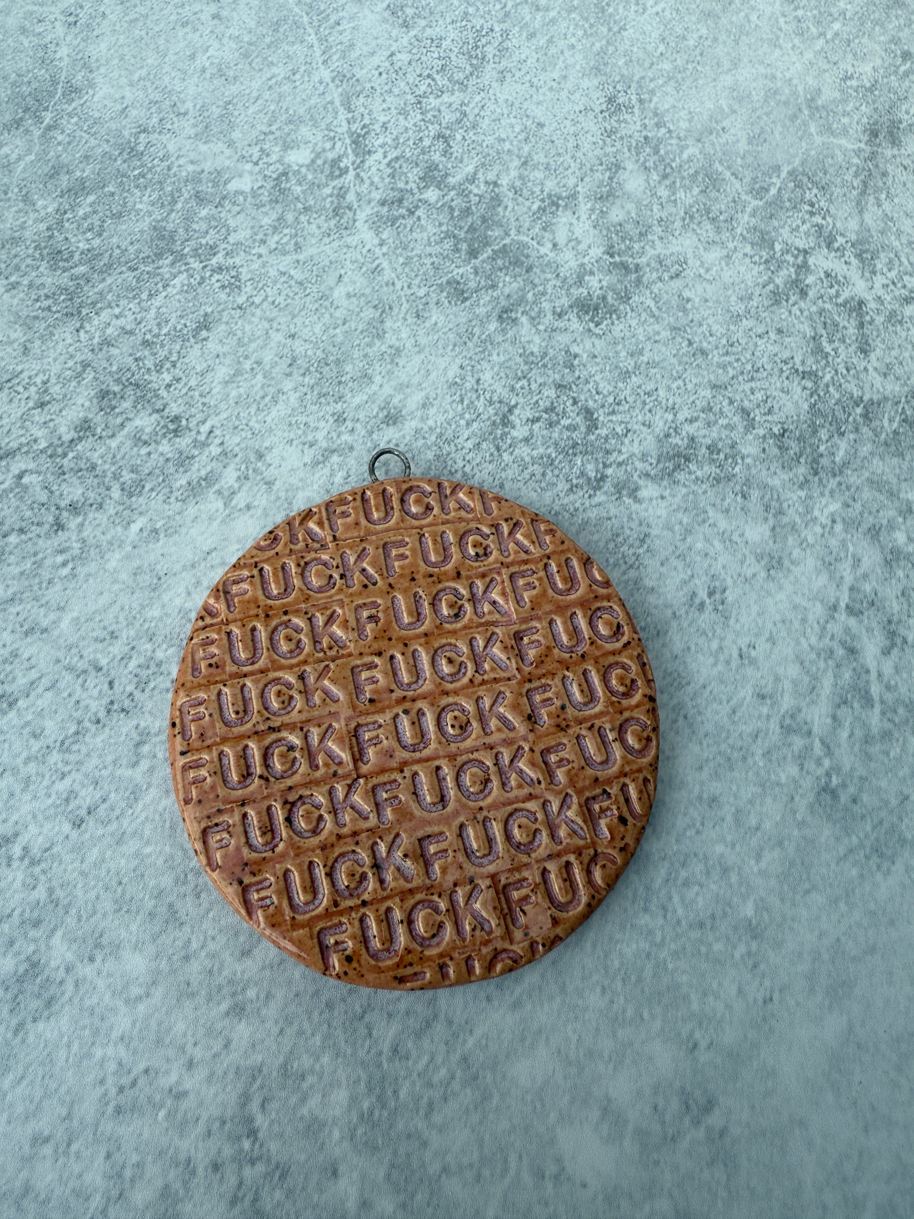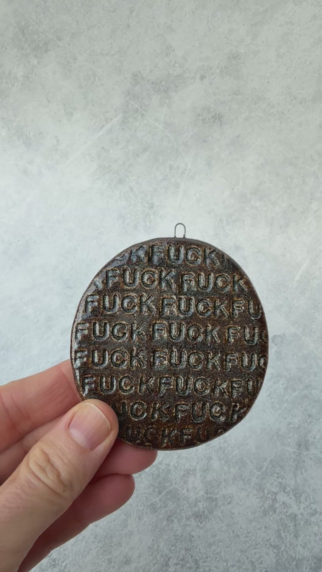 Stamped and glazed front and back by hand with a beautiful glossy glaze. Hang it from your tree or anywhere really!!