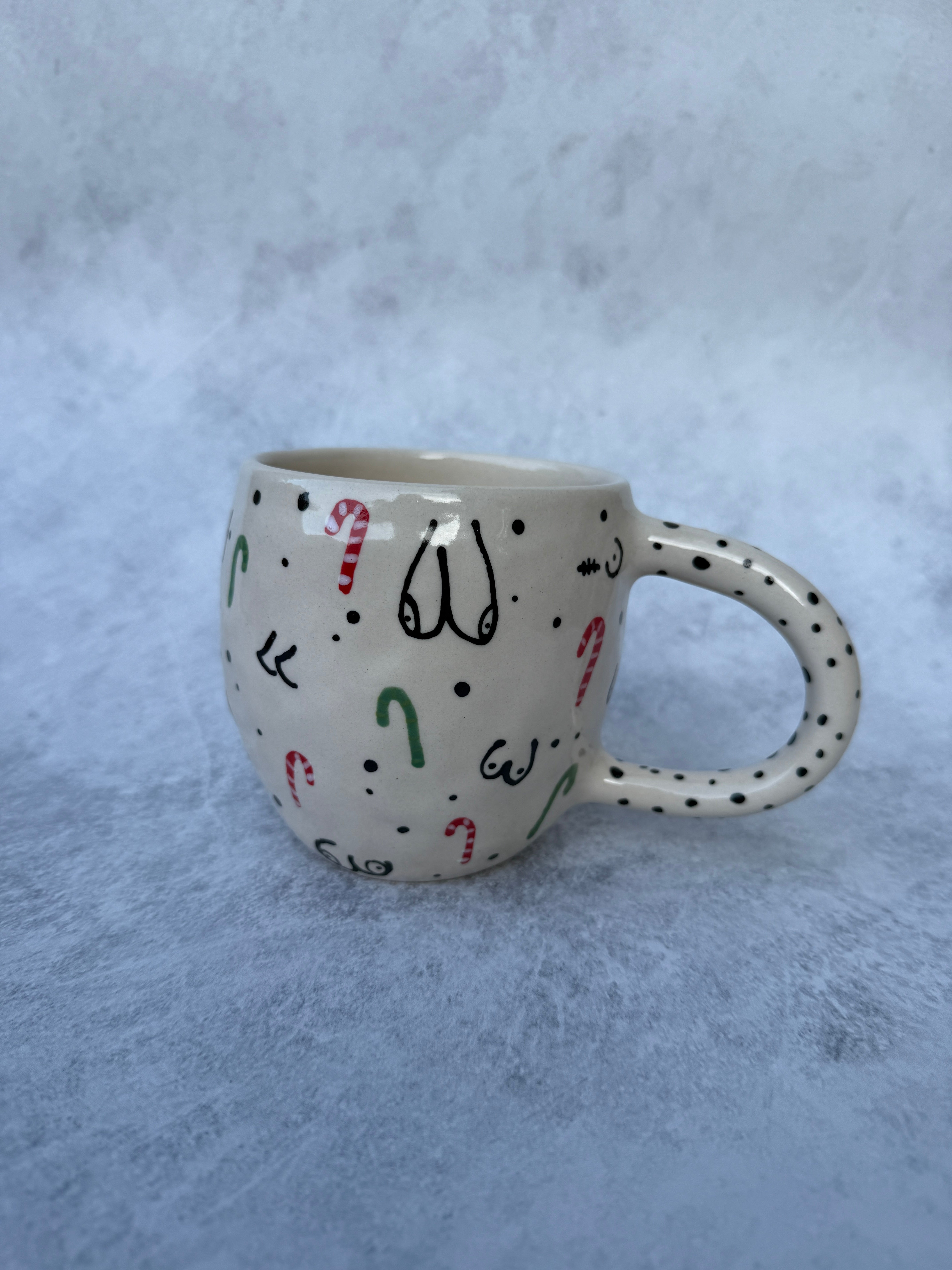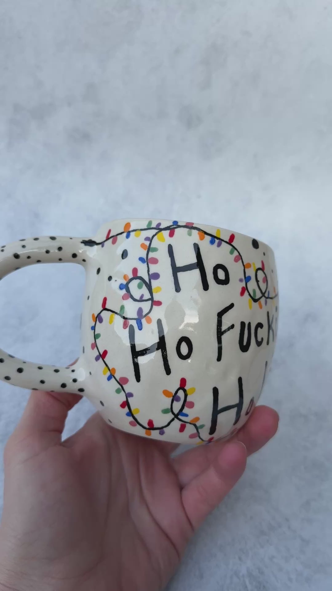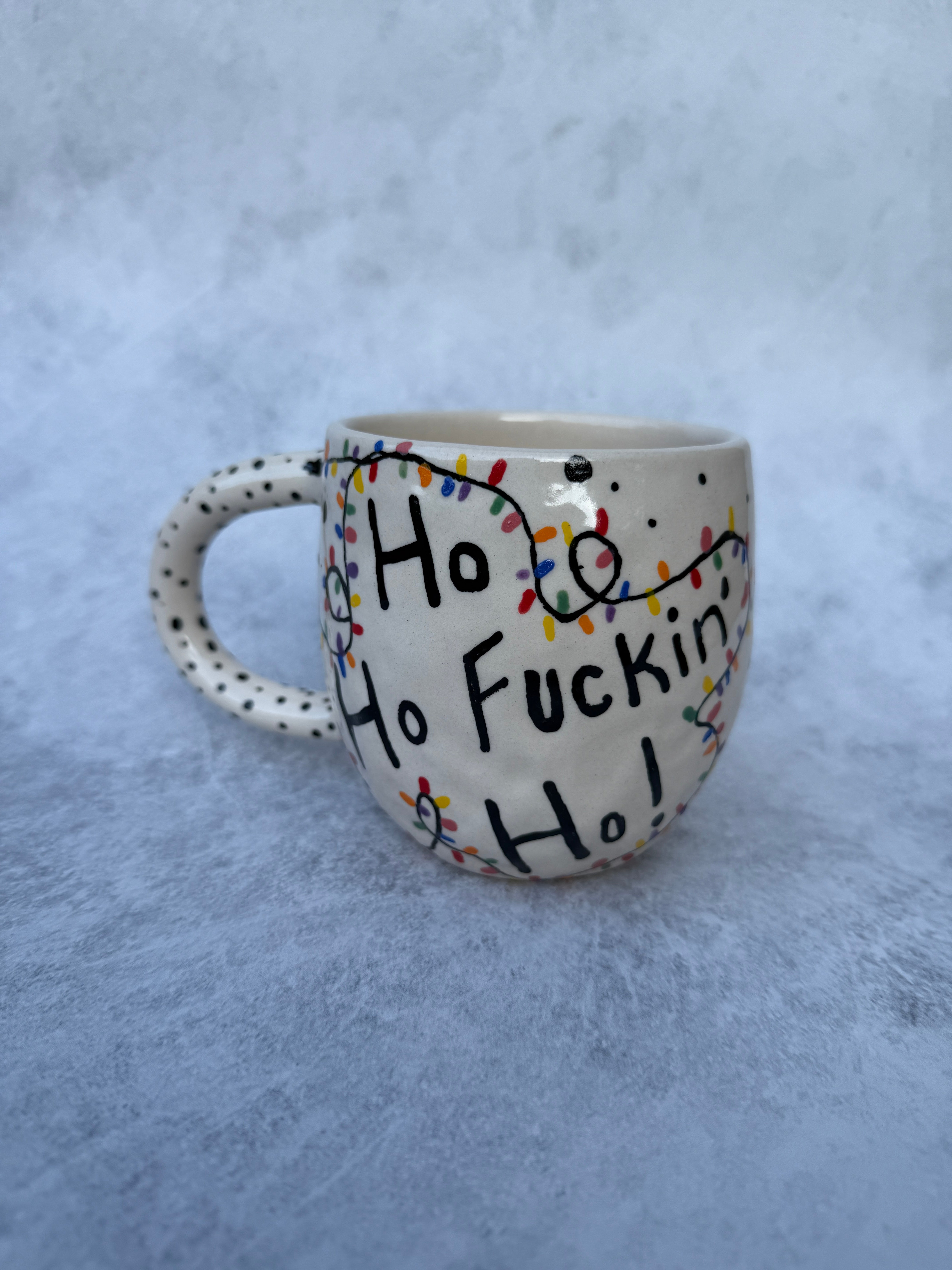 One side HO HO FUCKING HO and the other side holiday TITS! 15Oz