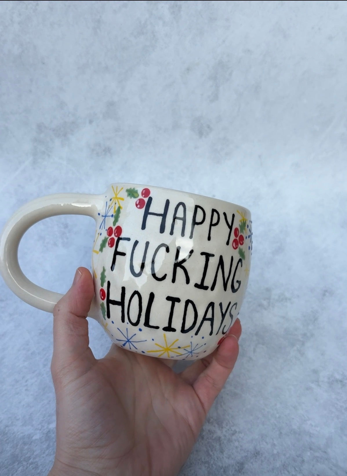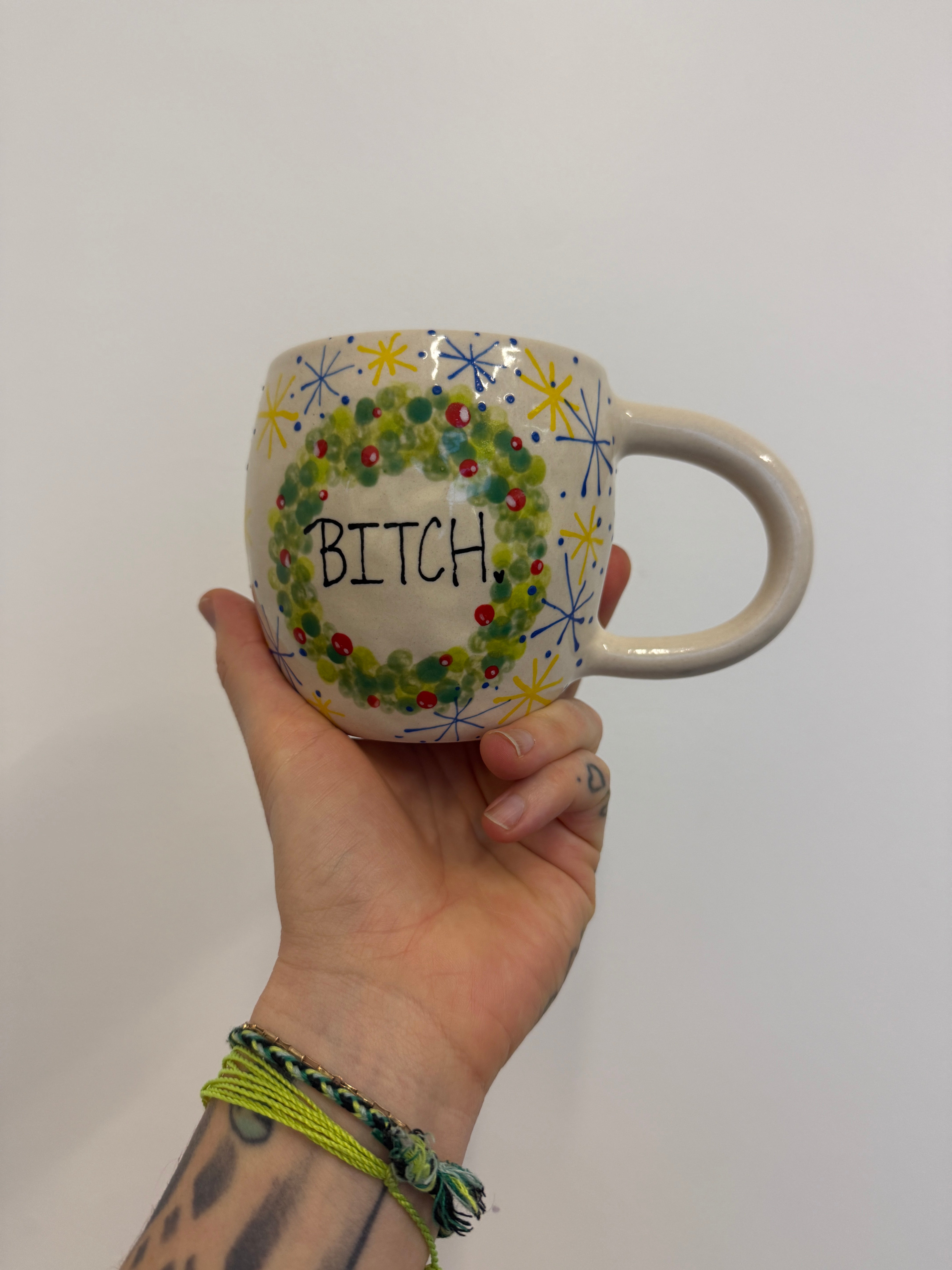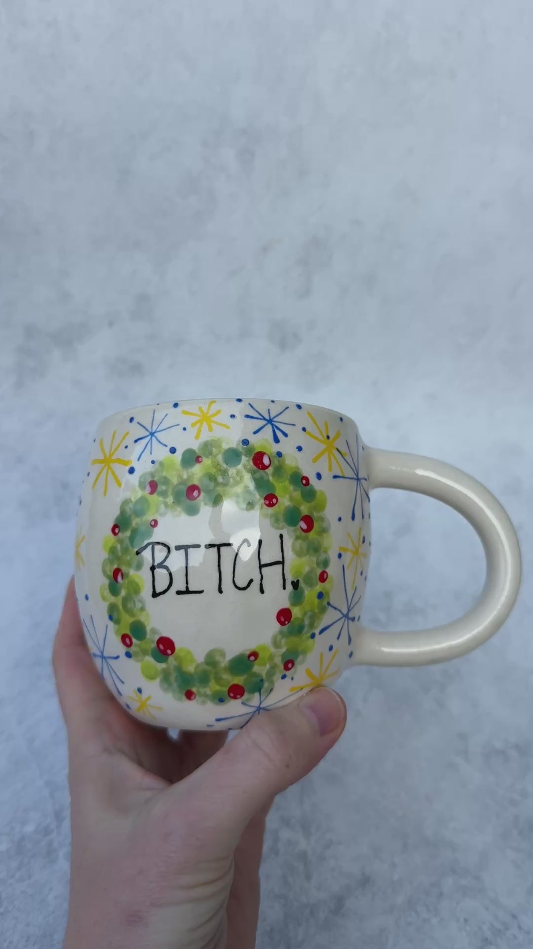 One side Happy Fucking Holidays and the other side is a Bitch wreath ! 15Oz