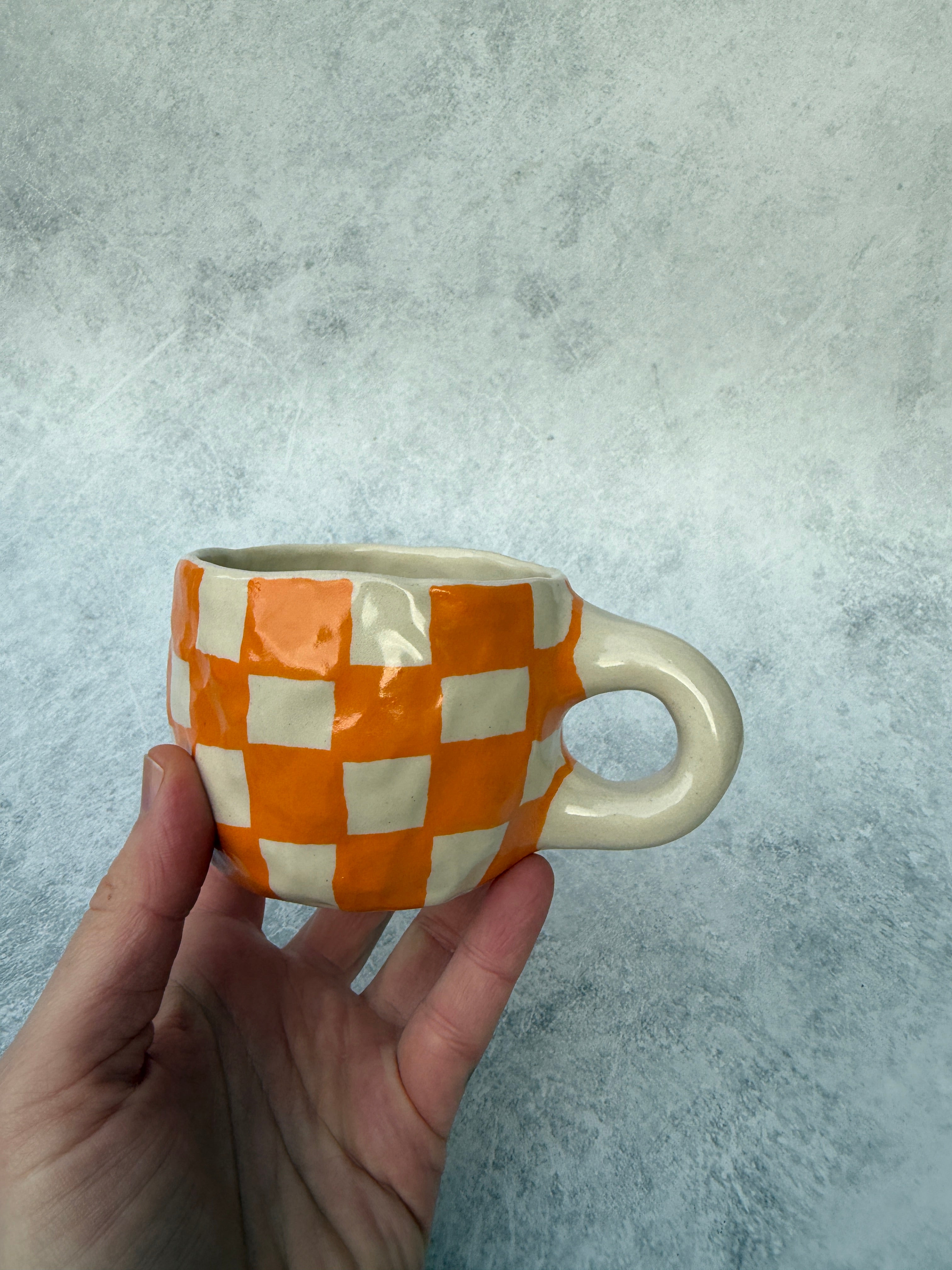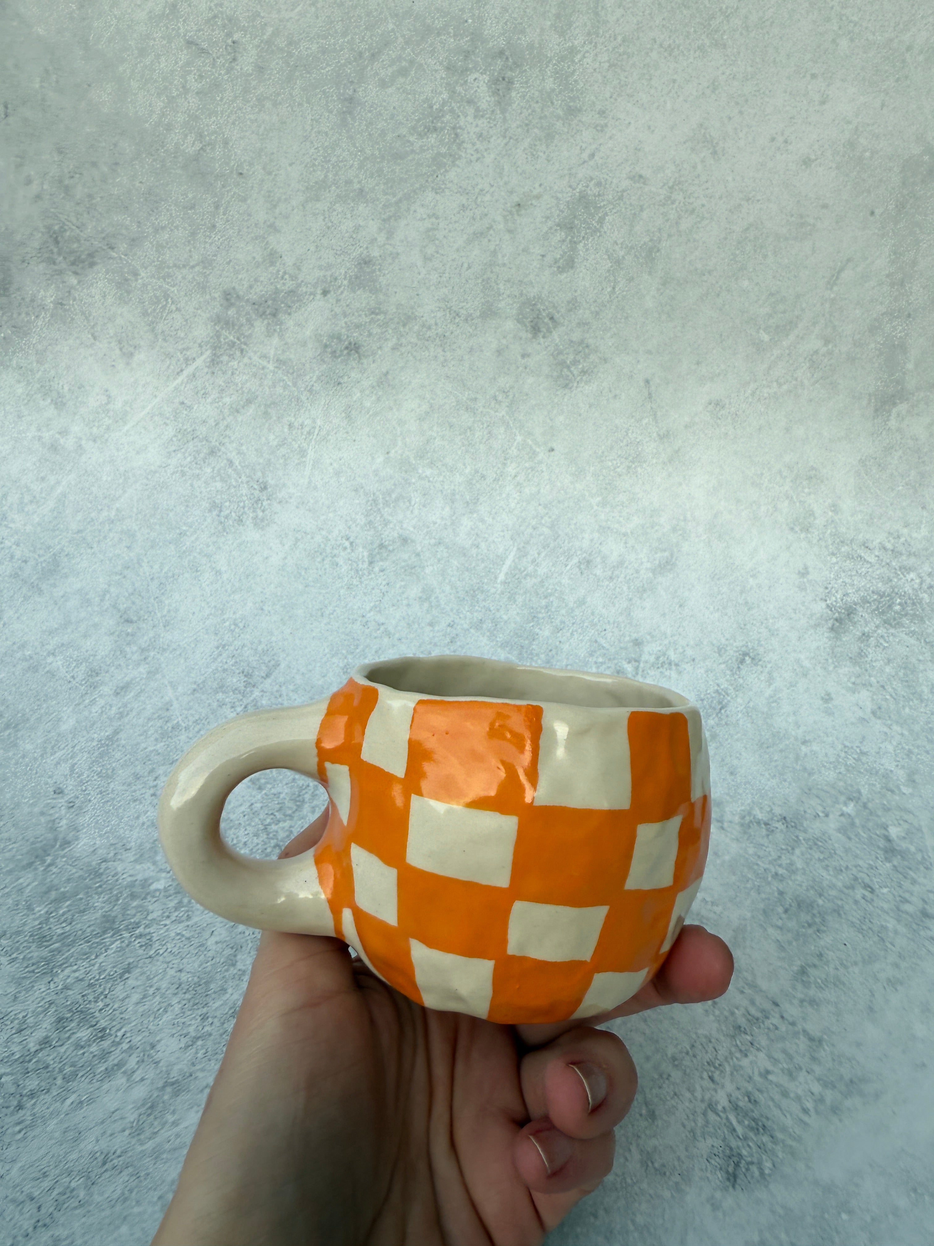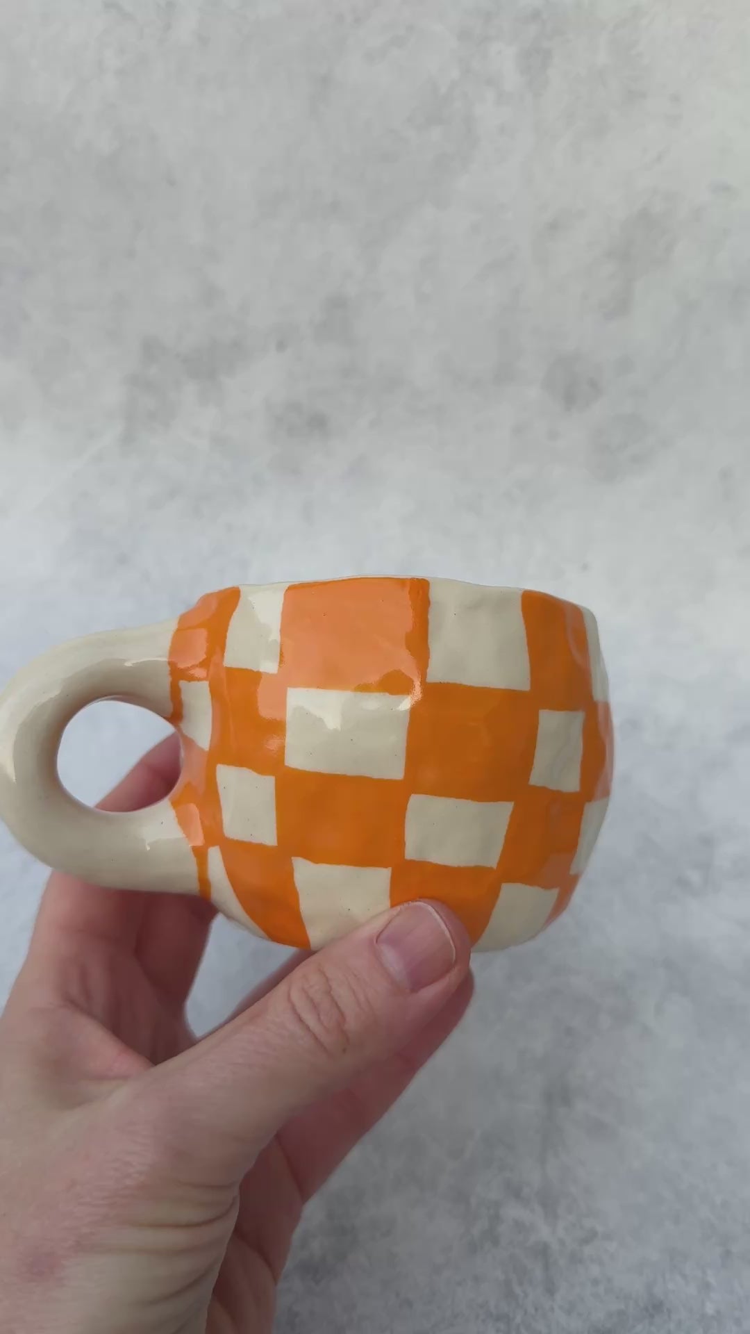 This hand built mug has all the fingerprints and feel you could want in a cute cozy lil mug. Glazed inside and out with clear glaze.