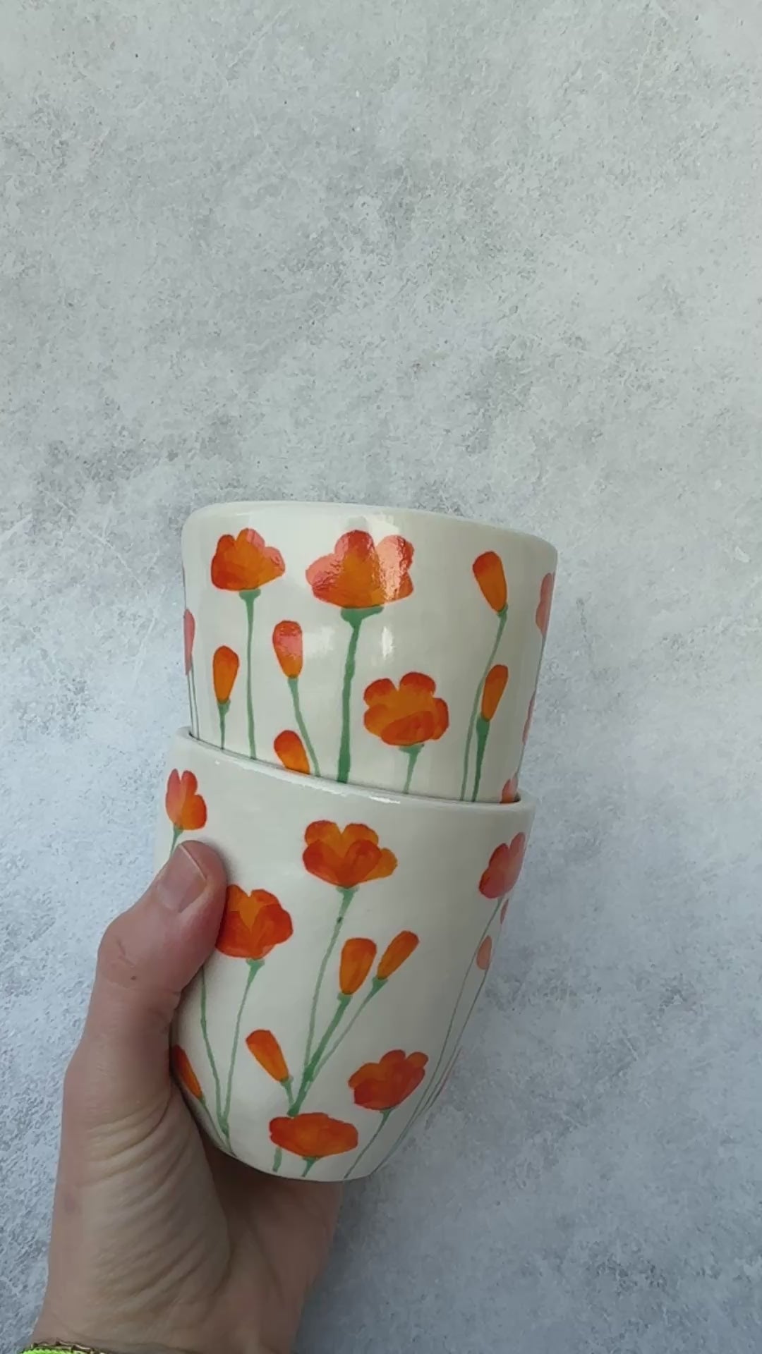 Enjoy this handmade porcelain cup adorned with poppies for sipping you favorite beverage. 11 oz