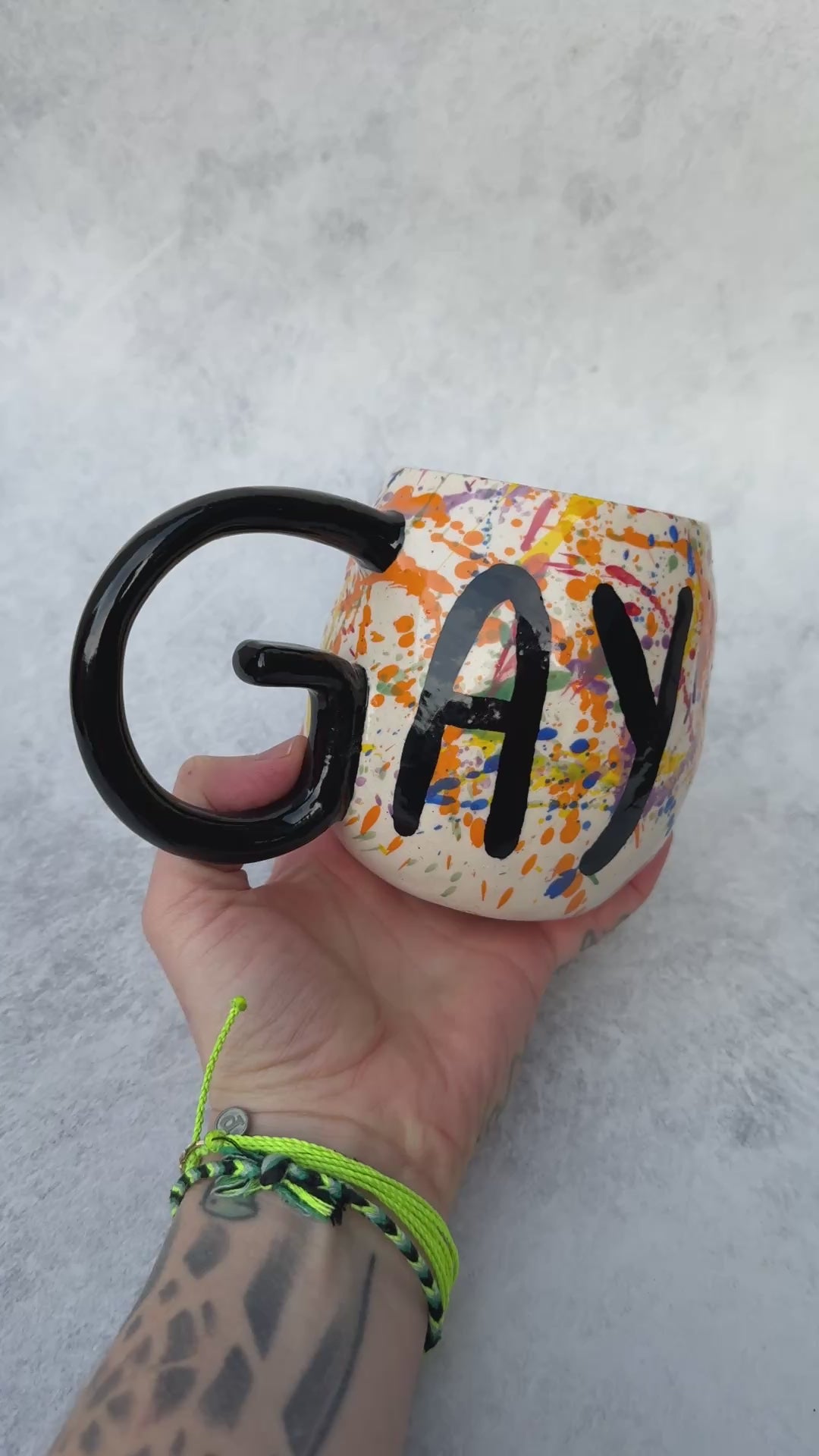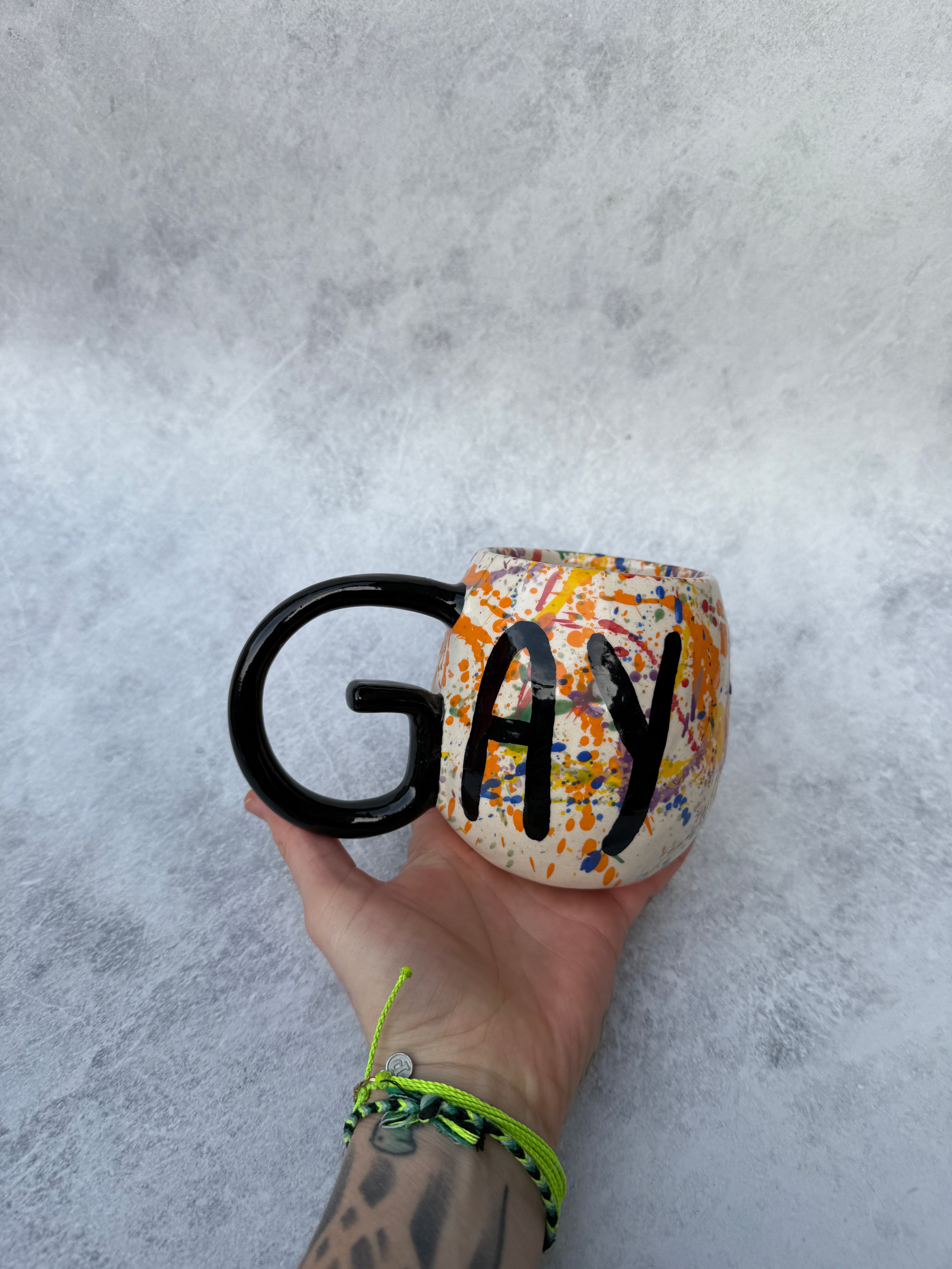 Rainbow splatter GAY mug